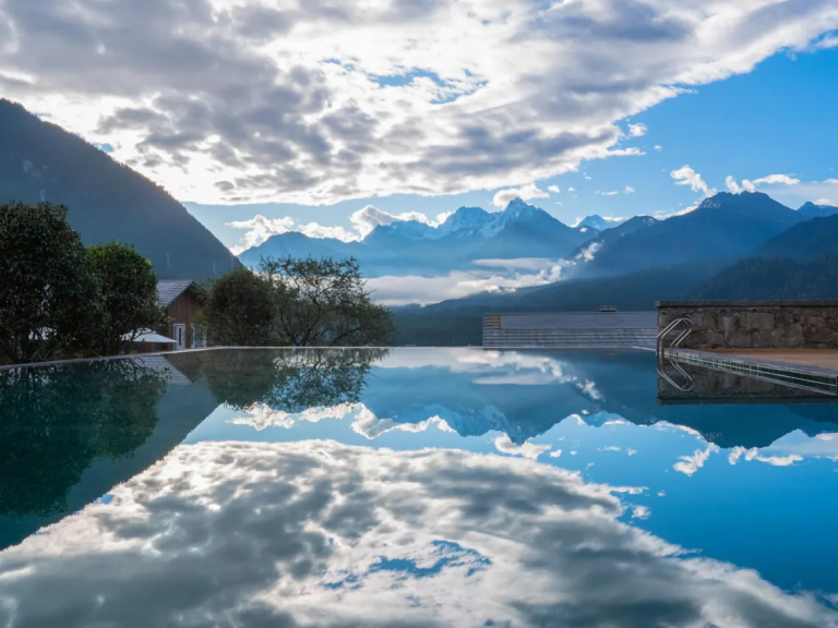 松贊石月亮山居坐落在怒江傈僳族自治州福貢縣鹿馬登鄉的赤灑底村,位於三江並流的核心地帶。入住松贊石月亮山居,就躲進了峽谷中的避世秘境,旅途勞頓蕩滌一空。松贊石月亮山居是典型的山地建築,與自然和村落和諧共處的理念,貫穿於山居的每個角落。