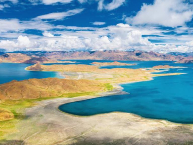 羊卓雍措:簡稱羊湖,藏語意為“上部牧場之碧玉湖”,位於西藏自治區山南市,距拉薩西南約70公里,湖面海拔4441米。它是喜馬拉雅山北麓最大的內陸湖泊,與納木錯、瑪旁雍錯並稱西藏三大聖湖。