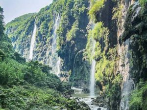 馬嶺河大峽谷(含往返電梯):這裡由於「千泉歸壑,溪水溯蝕」的作用,孕育著多姿多彩的峽谷奇觀,谷深流急,壁掛如織,銀瀑飛瀉,峽谷以地縫蟑谷、群瀑橫飛、碳酸鈣壁掛。