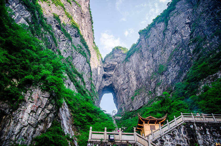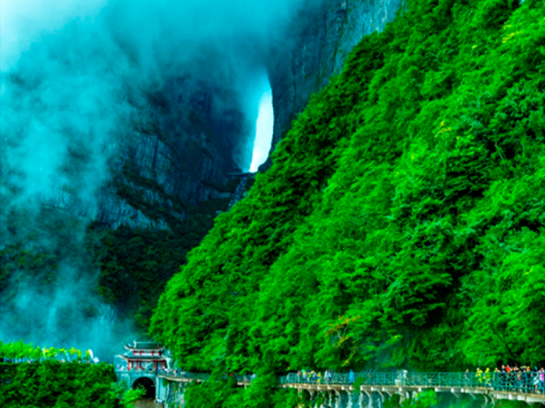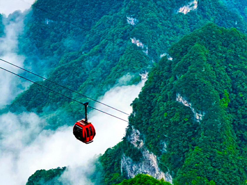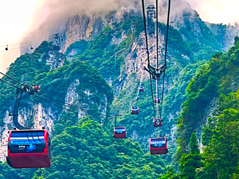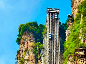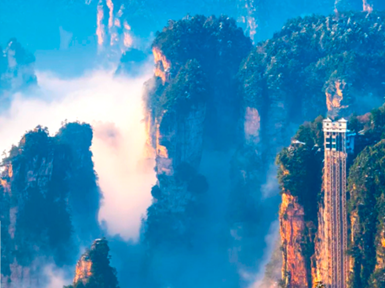 百龍電梯(下山):乘坐百龍電梯,只要經過兩分鐘,便進入如詩如畫的天上人間,欣賞有張家界「後花園」之稱的袁家界大峰林神奇美景。