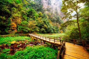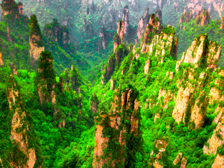 張家界國家森林公園是中國第一個國家森林公園,屬於武陵源風景名勝區的核心部分,公園以世界罕見的石英砂岩峰林地貌、原始森林和豐富的生物多樣性聞名,被譽為「縮小的仙境,放大的盆景」。張家界國家森林公園以「奇峰、幽谷、林海、雲濤」四絕聞名,是大自然鬼斧神工的傑作,兼具科學價值與美學價值,堪稱中國山水畫的現實原型。