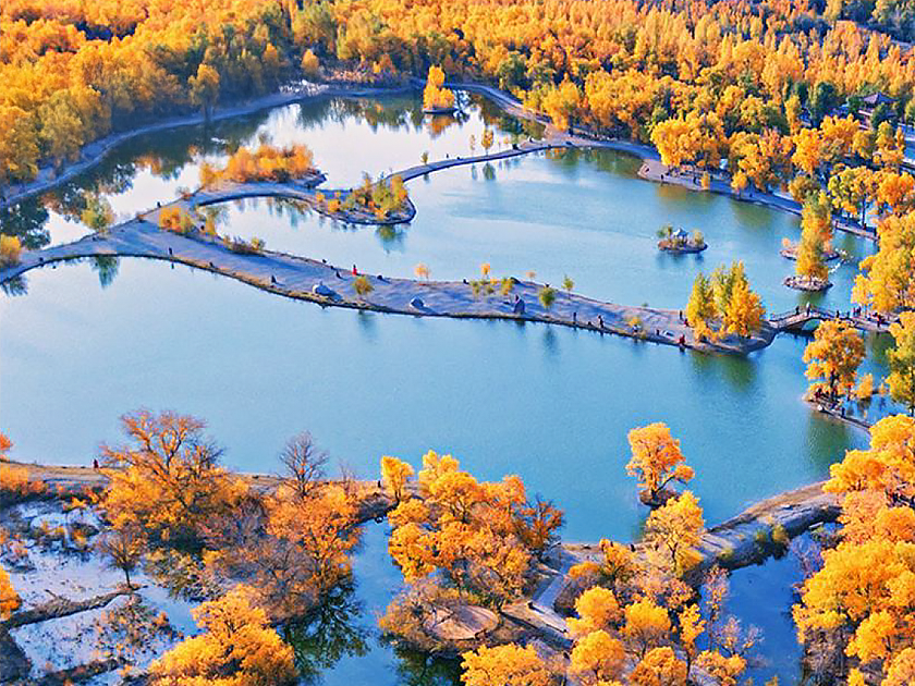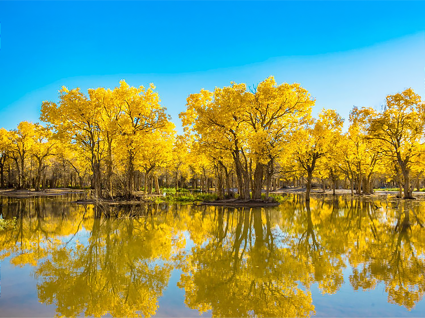 金塔胡楊林(含觀光車):金秋時節層林盡染,金黃葉片與湛藍湖水相映成畫,是攝影愛好者的天堂。