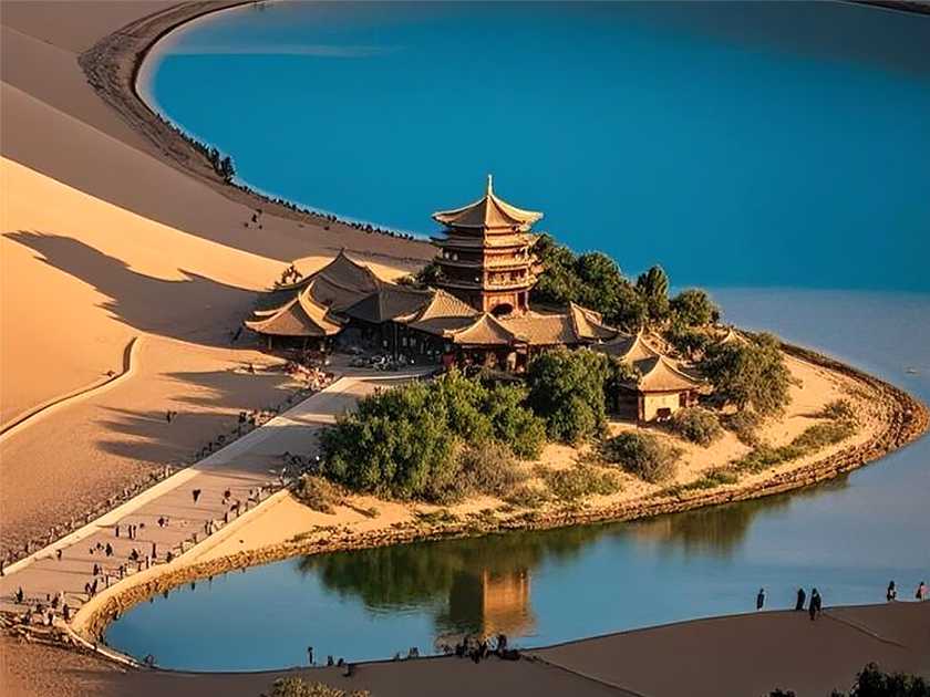 鳴沙山(含區間車+鞋套):沙峰起伏,人登沙山會發出聲響,月牙泉宛如一彎新月鑲嵌在沙漠之中,沙水共生堪稱奇跡。