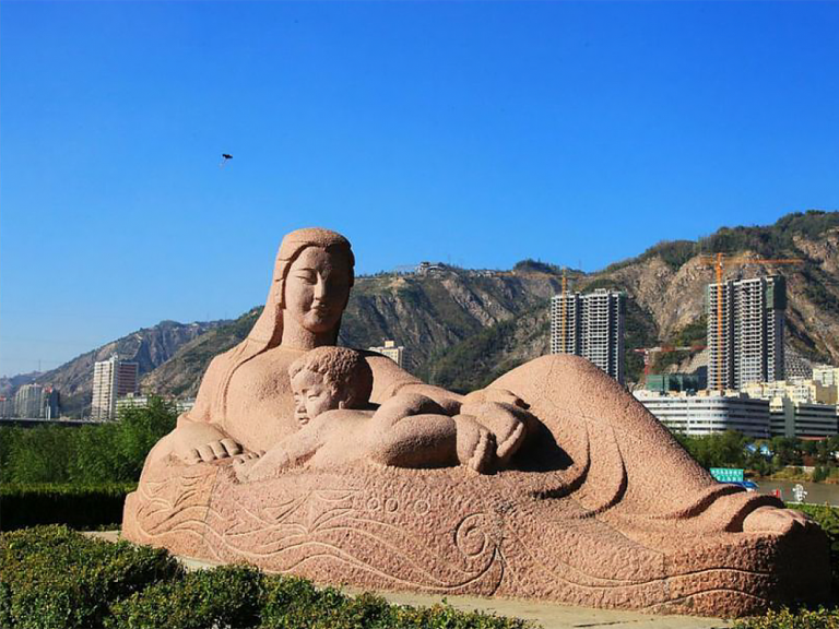 黃河母親雕塑:以母親和孩子的形象展現黃河的哺育之恩,充滿溫情;黃河水車是古老的灌溉工具,轉動的⽔ ⾞⾒證著⿈河岸邊的歲⽉變遷。
