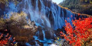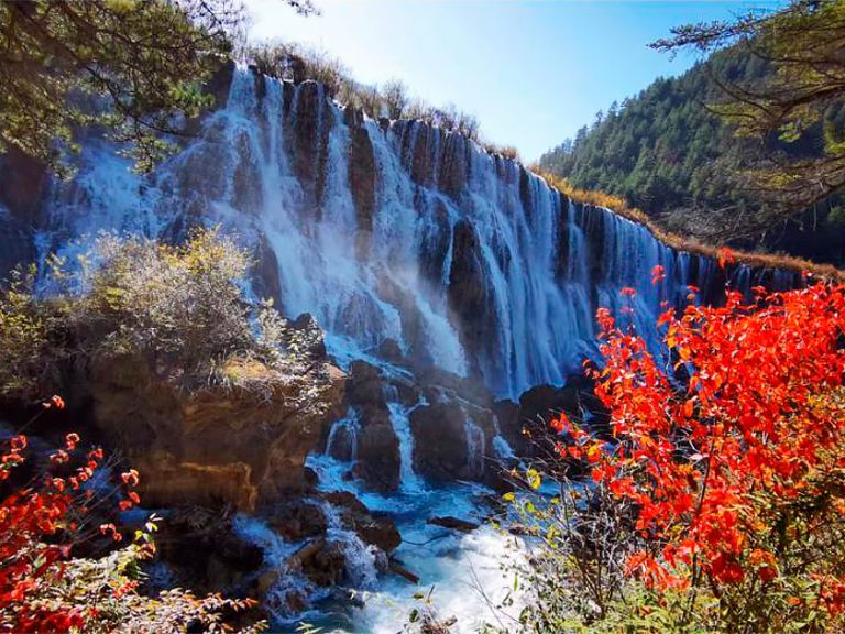 諾日朗瀑布:位於中國四川省九寨溝,海拔約2365米,瀑寬約270米,高約24.5米,是中國大型鈣化瀑布之一,也是中國最寬的瀑布。藏語中「諾日朗」是偉岸高大的意思,諾日朗瀑布即指雄偉壯觀的瀑布。
