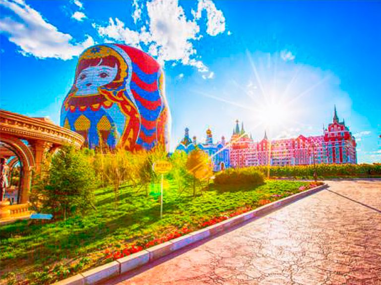 滿洲里國門:莊嚴雄偉,上方懸掛的國徽閃耀金光,國際鐵路從下方穿行而過。滿洲里套娃景區內五彩繽紛的套娃錯落有致,廣場中央高達幾十米的大套娃至今仍保持著健力士世界紀錄。