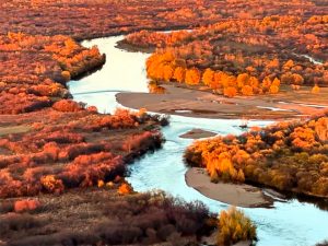 莫爾格勒河:是由湧泉匯聚而成,百轉千回,猶如草原上飄落的柔軟綢帶,是呼倫貝爾草原上一大奇觀。從空中俯瞰,河水蜿蜿蜒蜒,就像是一條蔚藍色綢帶。