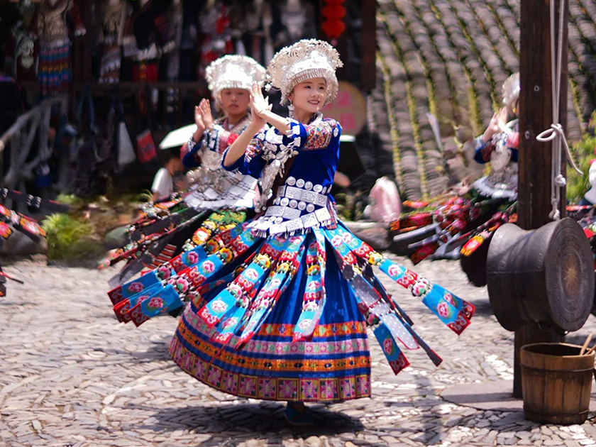 不同地區習俗略有差異,如郎德作為中國保存較完好的傳統苗族村寨,有苗家最高禮儀的十二道攔門酒,可體驗打糍粑,還有專場蹦苗迪感受原生態歌舞,品嚐酸湯魚等年味,體驗苗服換裝。苗年展現了苗族的文化傳承與社區凝聚力,是體驗苗族風情的最佳時機。
