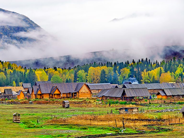 禾木圖瓦村落(含區間車):原木壘砌的尖頂木屋、晨霧中若隱若現的雪山、蜿蜒的禾木河,構成一幅北歐風情的東方畫卷,被評為「中國最美村落」之首。