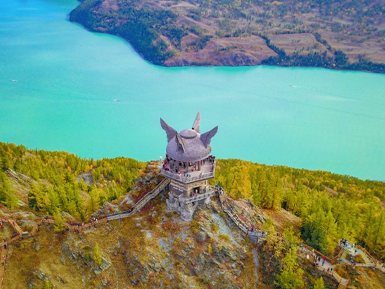 喀納斯・觀魚台(VIP包車):是俯瞰喀納斯湖全景的最佳地點,登臺遠眺,湖光山色盡收眼底,湖水隨光影變幻出迷人的藍綠色。