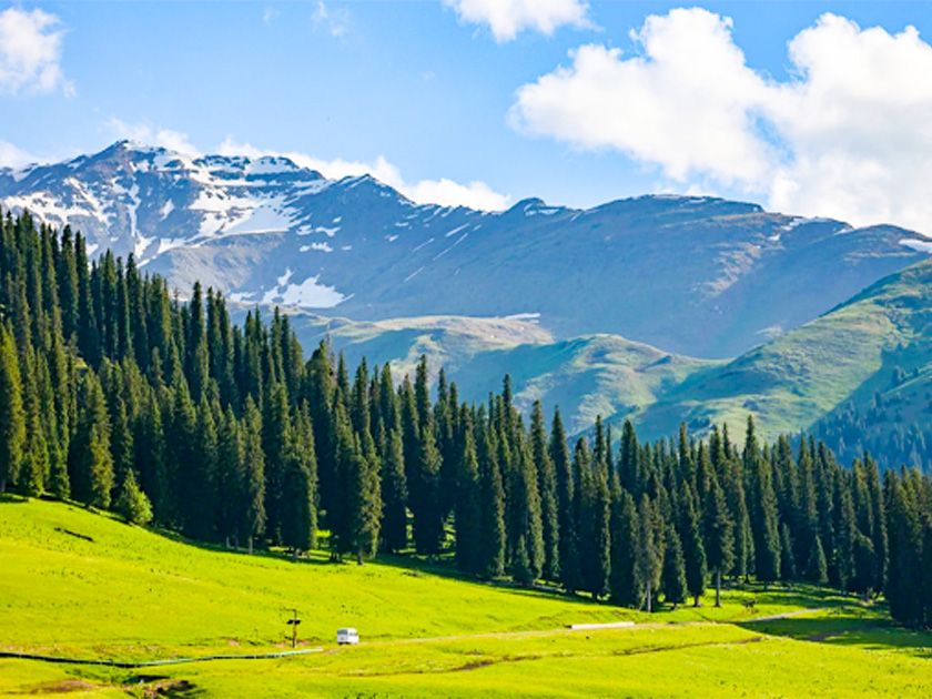 唐布拉百里畫廊:東起獨庫公路喬爾瑪服務區,西向伊犁尼勒克縣方向,沿著喀什河谷湖源而上,是一處融森林、草原、急流、山石美景為一體的自然景觀區,被譽為「中國天然畫廊」、「百里畫卷,天然畫廊」。