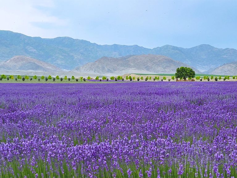 天山花海:坐落於天山腳下的廣袤土地上,這片由數萬年冰川融水滋養的花海,各種花草與香料植物綿延數萬畝,融入原野、村莊、雪山等多元景觀。漫步其間,邂逅西域的浪漫與傳奇。
