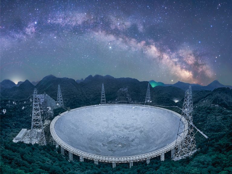 中國天眼:中國天眼即500米口徑球面射電望遠鏡(FAST),位於貴州平塘,是全球最大單口徑、最靈敏的射電望遠鏡。