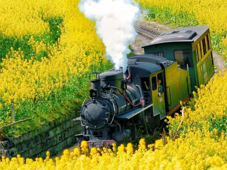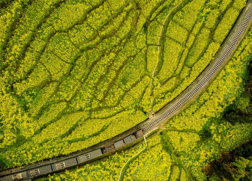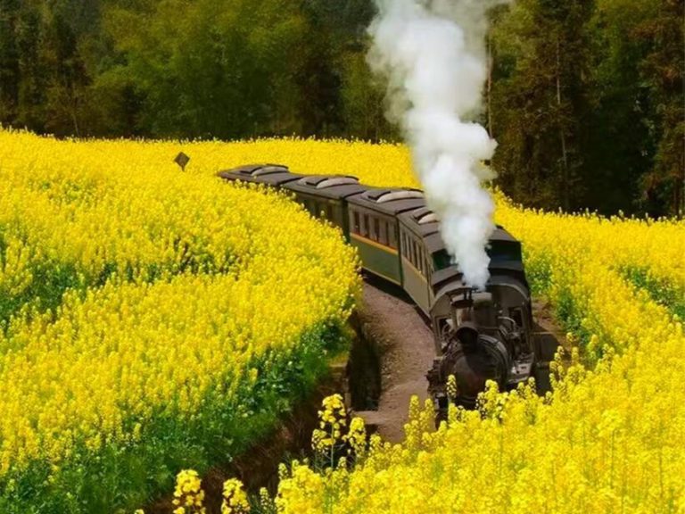 嘉陽油菜花田:乘世界唯一正常運行窄軌蒸汽小火車,穿行萬畝油菜花田。