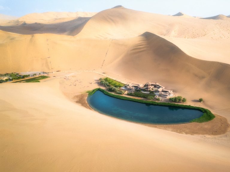 鳴沙山月牙泉:鳴沙山月牙泉位於騰格里沙漠邊緣,是國家5A級旅遊景區、世界地質公園。