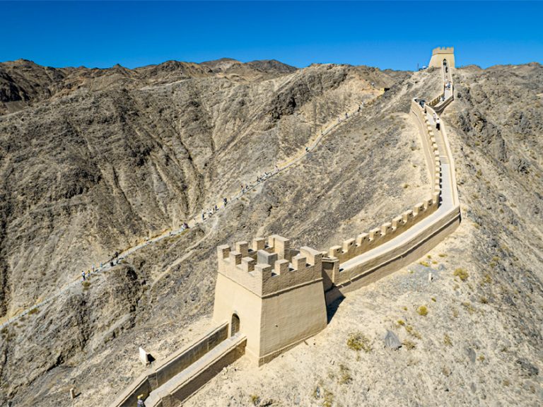 懸壁長城:這處明代長城遺址位於嘉峪關關城以北,因修築於四十五度傾角的山脊上,狀似凌空懸垂而得名。