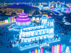 冰雪大世界:以萬千冰雕雪塑勾勒出璀璨天地,高達數十米的冰滑梯、流光溢彩的冰雪城堡與夜間亮起的絢爛燈光交相輝映,既有無與倫比的視覺震撼,也有豐富的冰雪樂體驗。