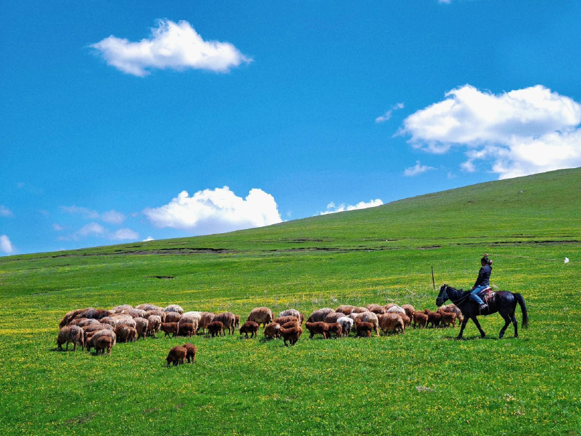 喀拉峻大草原(含區間車):高山五花草甸天然大草原,地勢起伏如人體曲線,被譽為「人體草原」,春夏之交百花綻放,牛羊點綴其間,景色壯美而靈動。
