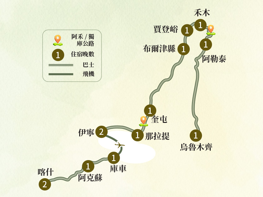 註:如遇國泰航班,則出發前一天晚上於香港機場集合,飛往烏魯木齊,增加遊覽【天山天池(含區間車)】。