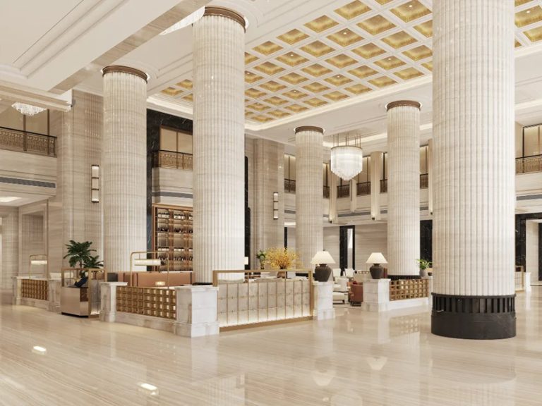 酒店設計汲取歐洲文化哲學,融合歐式風格,強調以華麗的裝飾、濃烈的色彩、精美的造型達到雍容華貴的裝飾效果工藝,為高端商務人士在鬧市中打造一處特色高端居所。