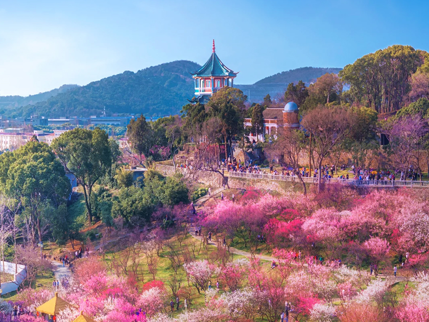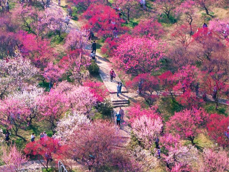 無錫梅園:新春時節,萬株梅花映襯著亭台樓閣,在香海裡為家人祈一份花好月圓。(參觀太湖珍珠館、紫砂博物館·購物店)
