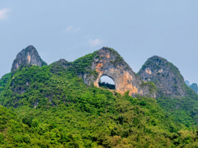月亮山:大自然的鬼斧神工,於其山體上方擁有一個舉世罕見、貫穿山壁的天然石拱洞。