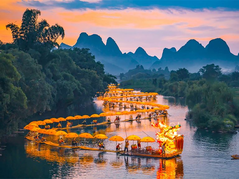 ② 春節特別項目-遇龍河金龍竹排巡遊,解鎖新春灕江夜色。