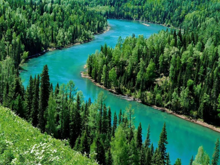 喀納斯景區(VIP 包車):遊覽臥龍灣、月亮灣、神仙灣,登觀魚臺(含區間車)賞喀納斯湖全景。