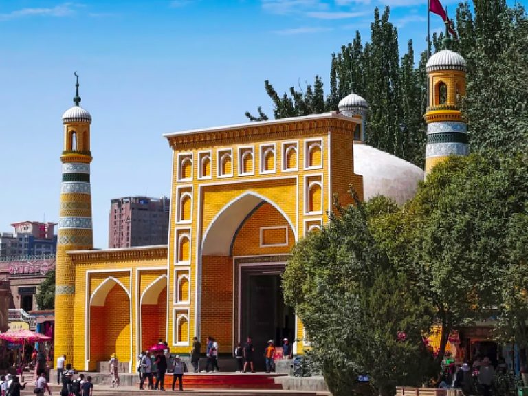 艾提尕爾清真寺(外觀):中國伊斯蘭教著名清真寺,是維吾爾族古建築藝術的典範。