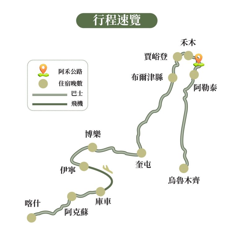 註:如遇國泰航班,則出發前一天晚上於香港機場集合,飛往烏魯木齊,增加遊覽【天山天池(含區間車)】。
