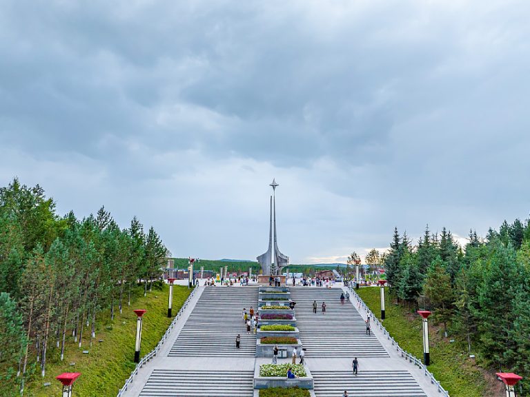 【北極星廣場】又稱「西山公園」,是這座「中國北極」城市的標誌性觀景點與市民休憩中心。登高可俯瞰漠河城區全貌,遠眺蒼茫林海,夜幕降臨時更可仰望璀璨星空,感受身處祖國最北端的獨特意境。
