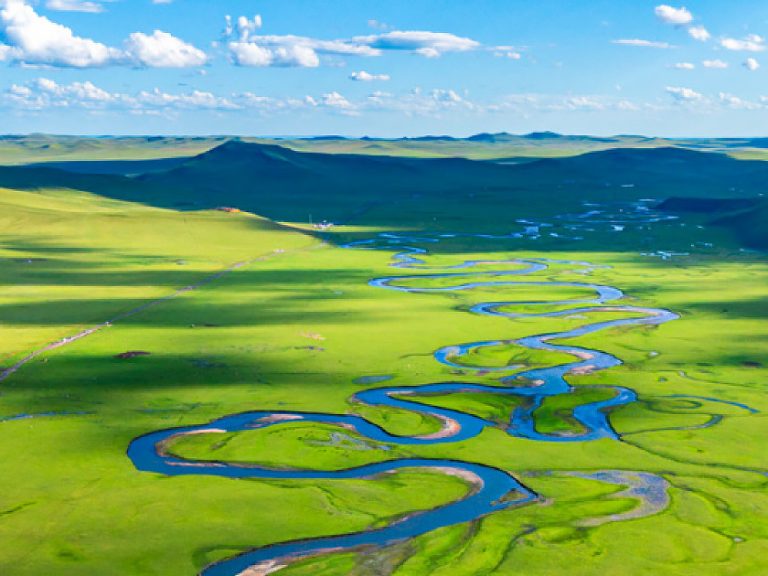 【莫爾格勒河景區】以「天下第一曲水」莫爾格勒河為核心,河水九曲十八彎,如銀練盤繞於無垠草原之上,完美融合壯麗自然奇觀與千年遊牧文化,被譽為呼倫貝爾草原的靈魂所在。