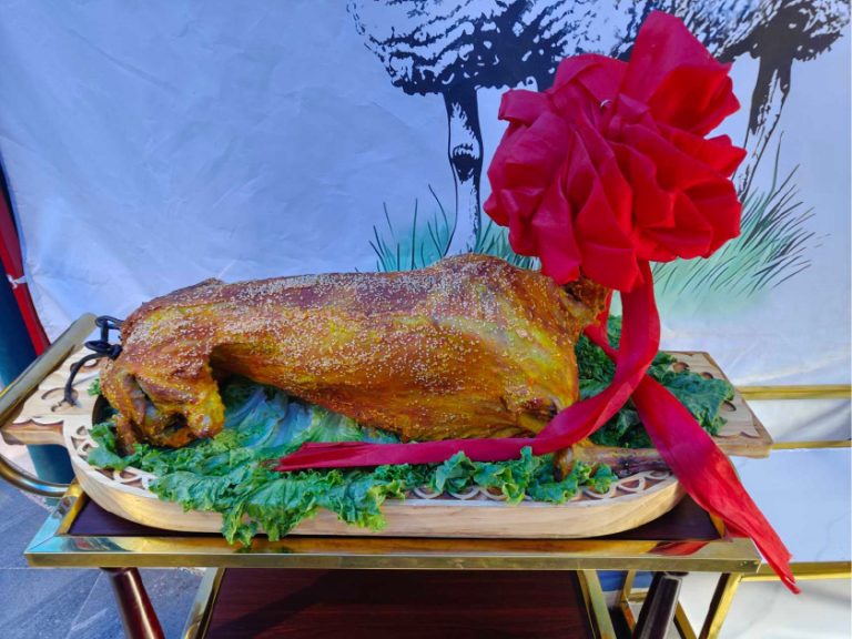 優選當地特色風味:烤全羊風味、川湘融合菜、清真火鍋、饢坑烤包子風味、新疆羊肉串、圖瓦手抓肉、紅扒肘子風味、新疆葡萄酒等。