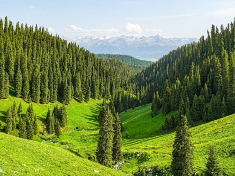 【果子溝大橋觀景台】伊犁的天然門戶,橫跨峽谷、氣勢恢宏,有「伊犁第一景」、「奇絕仙境」之美譽,遠眺雪山、松林與蜿蜒河谷,盡覽天山北麓壯麗風光。