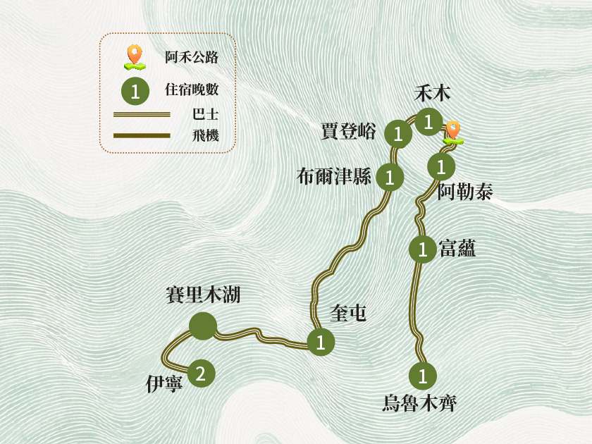 膳食:早:酒店|中:當地風味|晚:額爾齊斯河風味(包房)