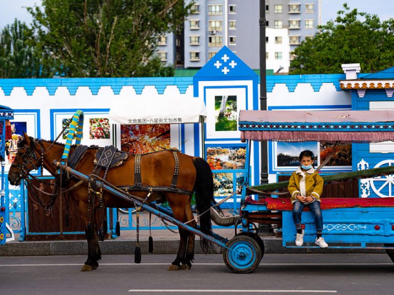 【喀贊其民俗街】乘傳統馬車漫遊這座充滿維吾爾族生活氣息的百年街區,藍窗白牆、庭院深深,處處洋溢濃郁民族韻味;途中特別安排品嚐地道手工冰淇淋,清涼香甜,回味悠長。
