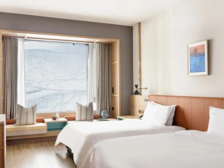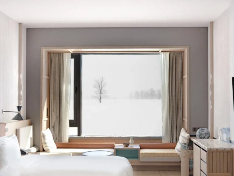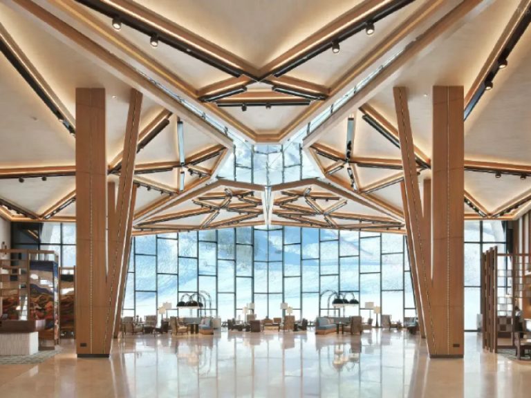酒店緊鄰滑雪場東區服務大廳,客房內設全景落地窗,飽覽四季美景,風格融合民俗風情,營造出與自然共生的奢適體驗。