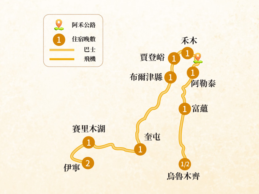 註:如遇國泰航班,則出發前一天晚上於香港機場集合,飛往烏魯木齊,並額外安排遊覽【天山天池(含區間車)】。