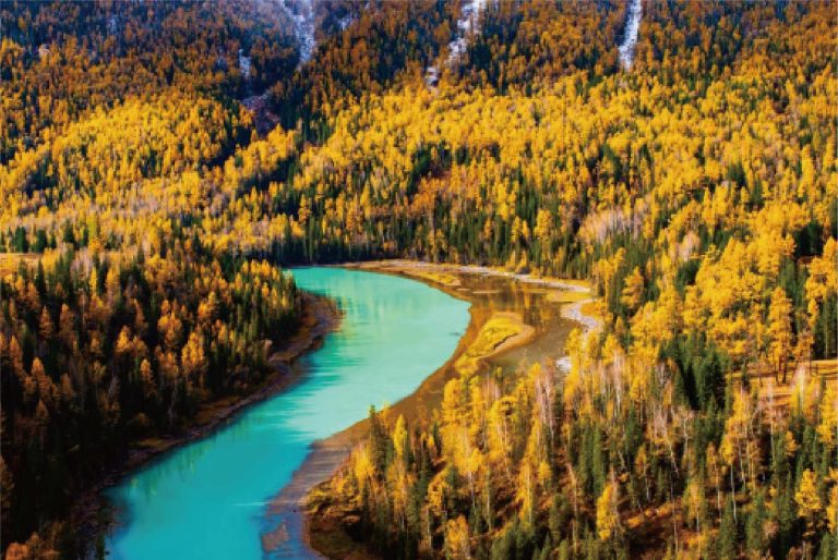 喀納斯景區(VIP 包車):遊覽臥龍灣、月亮灣、神仙灣秋色絢爛,登觀魚臺(含區間車)賞喀納斯湖全景。