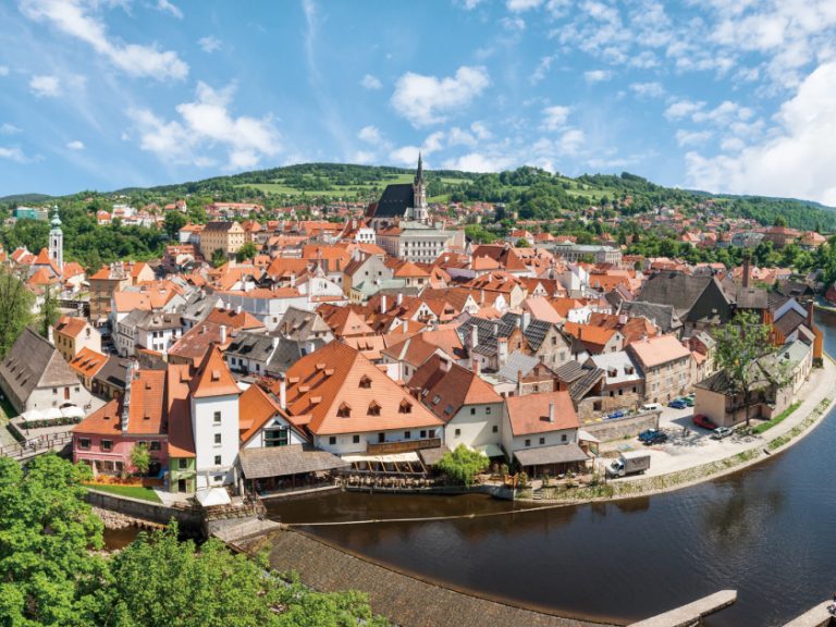【古姆洛夫】分為城堡區、下遊谷地及舊城區。舊城區內之聖維塔教堂和市政廣場及清幽的散步路線,充滿中世紀的古典情懷。