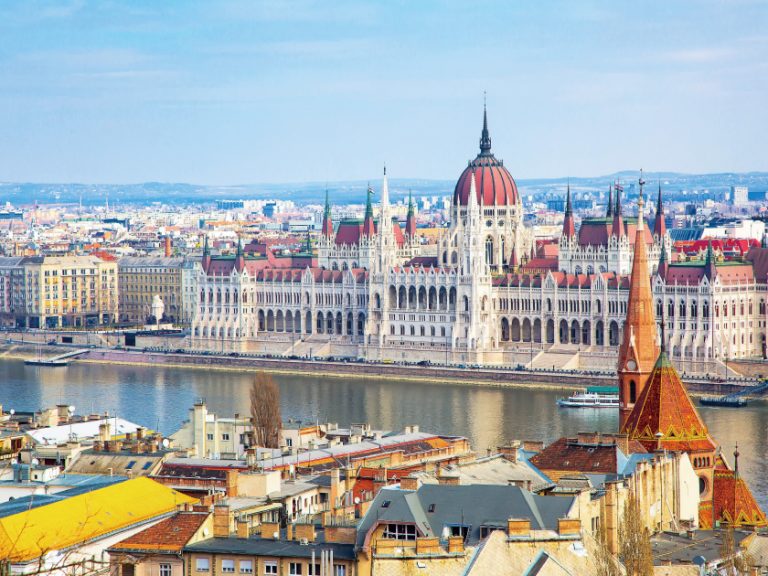 【布達佩斯】遊覽布達城的漁夫城堡和馬提亞教堂,旁邊建有白色尖塔和彩色馬賽克磁磚屋頂,於門外拍照後,途經皇宮廣場,從高處俯瞰布達佩斯全景。