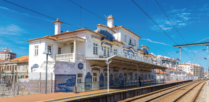 【阿維羅火車站】雪白外牆上的磚畫,刻畫了阿維羅古時的風貌,給人一種小清新的感覺,很適合拍文青照片。