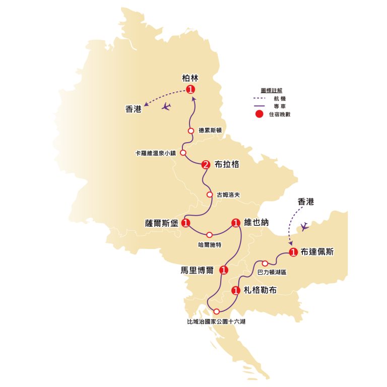註:如多瑙河觀光塔餐廳客滿或休息,將會改為當地餐廳午餐及登上多瑙河觀光船,敬請留意。