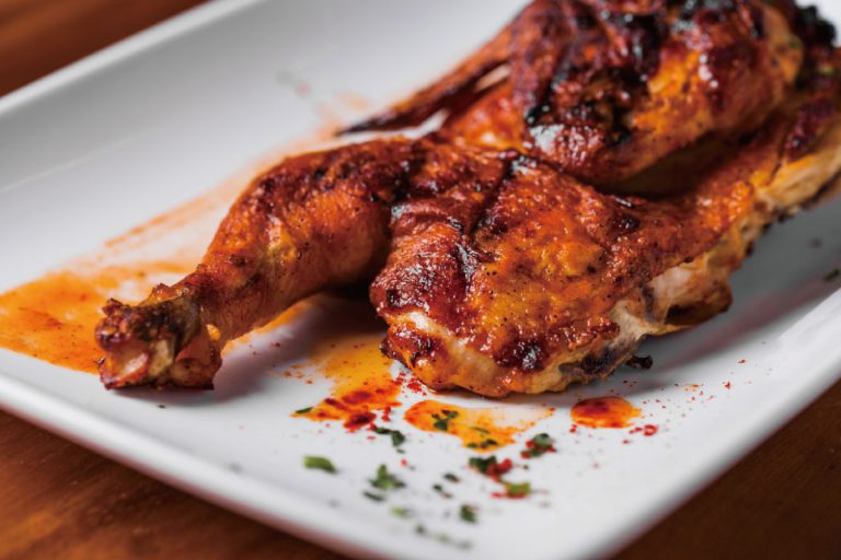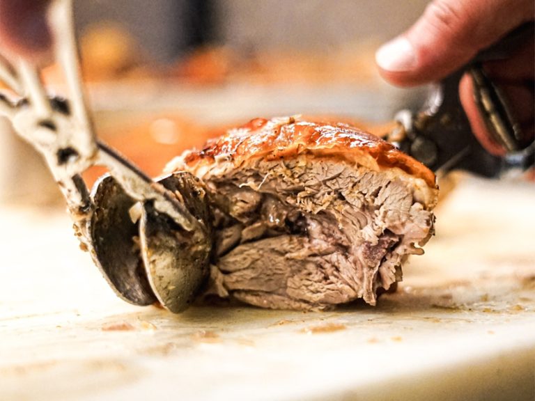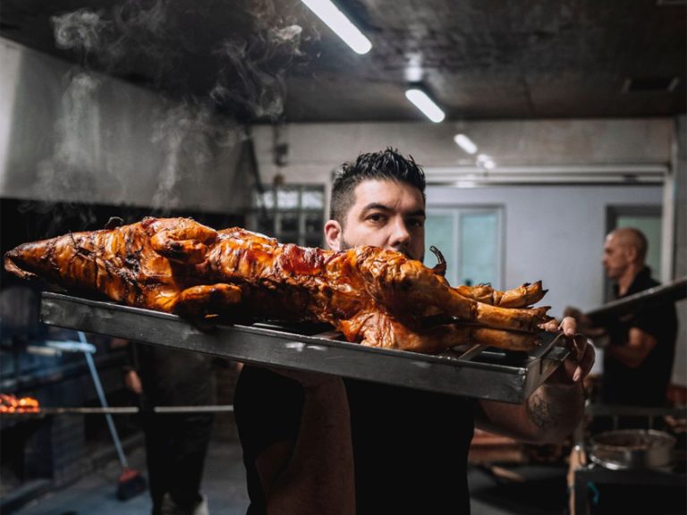 【塞哥維亞烤乳豬】選用出生僅數日的小豬,搭配橄欖油、檸檬、鹽及歐芹等香料烘烤,外皮酥脆、內部軟嫩。