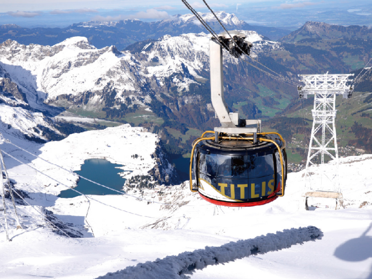 【鐵力士旋轉360度纜車】這段纜車為世界首創的360度旋轉纜車,可全方位欣賞雪山美景。
