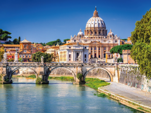 是日晚上由翠明假期領隊陪同下,乘坐歐洲或中東航空公司客機,經歐洲或中東城市轉機,飛往意大利首都~羅馬。