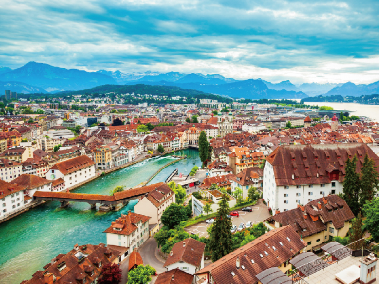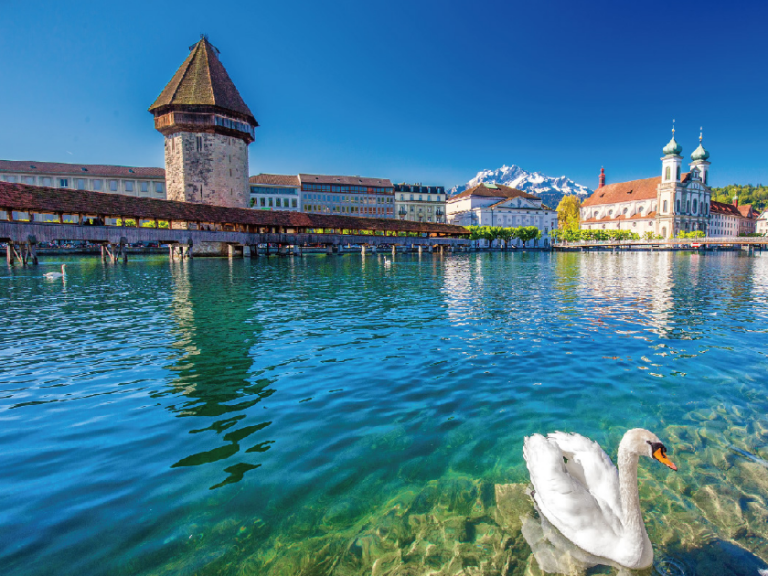 【琉森】通往瑞士中心的大門,位於琉森湖畔如畫的風景區,鑲嵌在令人難忘的山嶺間。因其風景名勝、精美紀念品和名錶專門店,吸引無數遊人。
