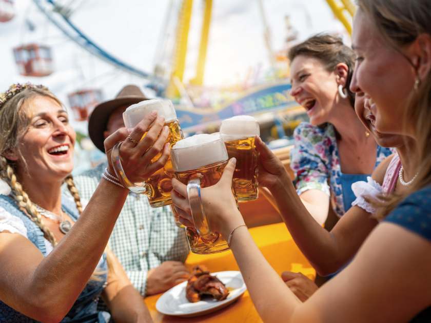 【慕尼黑啤酒節】 每年 9 月末至 10 月初在德國的慕尼黑舉行,源自 19 世紀巴伐利亞王儲路德維希的婚禮,與民眾同樂,現今已發展成傳統節慶。每年吸引超過 600 萬名遊客,走進當地的帳篷,乾掉 600 萬公斤以上的啤酒!