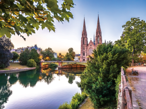 【斯特拉斯堡】是一座充滿歷史與文化魅力的城市,位於法國東北部阿爾薩斯地區,是阿爾薩斯的首都,也是歐洲議會的所在地,被譽為「歐洲的心臟」。壯觀的斯特拉斯堡聖母院主教座堂、克勒貝爾廣場、小法國區等更在1988年被聯合國教科文組織列為世界文化遺產。