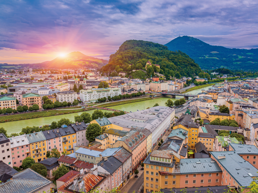 【薩爾斯堡】「音樂神童」莫札特的故鄉。老城區於1996年被聯合國教科文組織列入世界遺產名錄。步行前往著名的米拉貝爾花園後抵達舊城區,途經《仙樂飄飄處處聞》電影拍攝場地。格特萊第街是薩爾斯堡最著名的街道,沿途經過莫札特故居、莫札特廣場及大教堂。